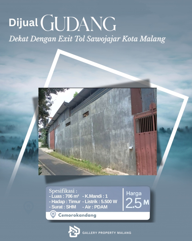 Dijual Cepat Gudang di Cemorokandang Malang